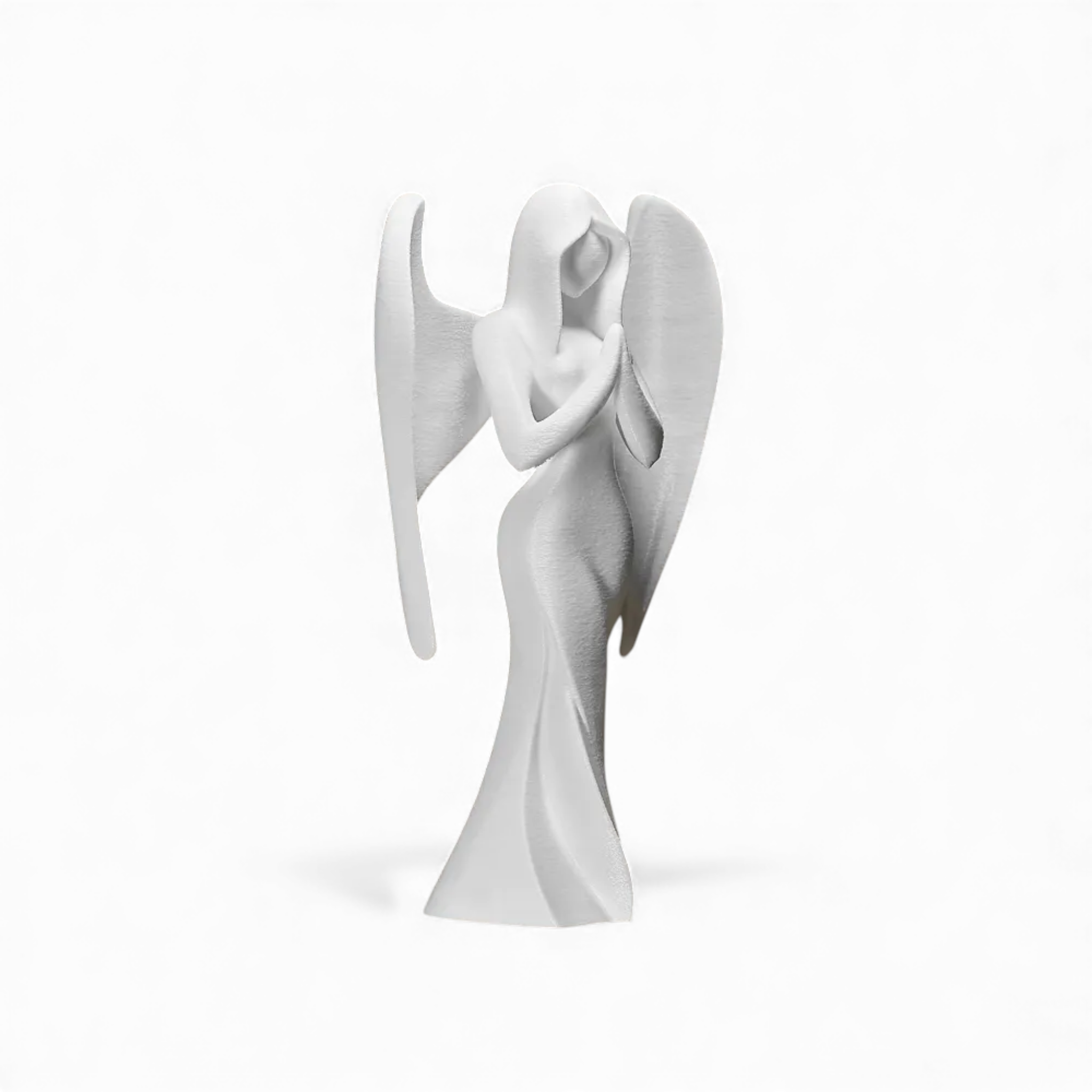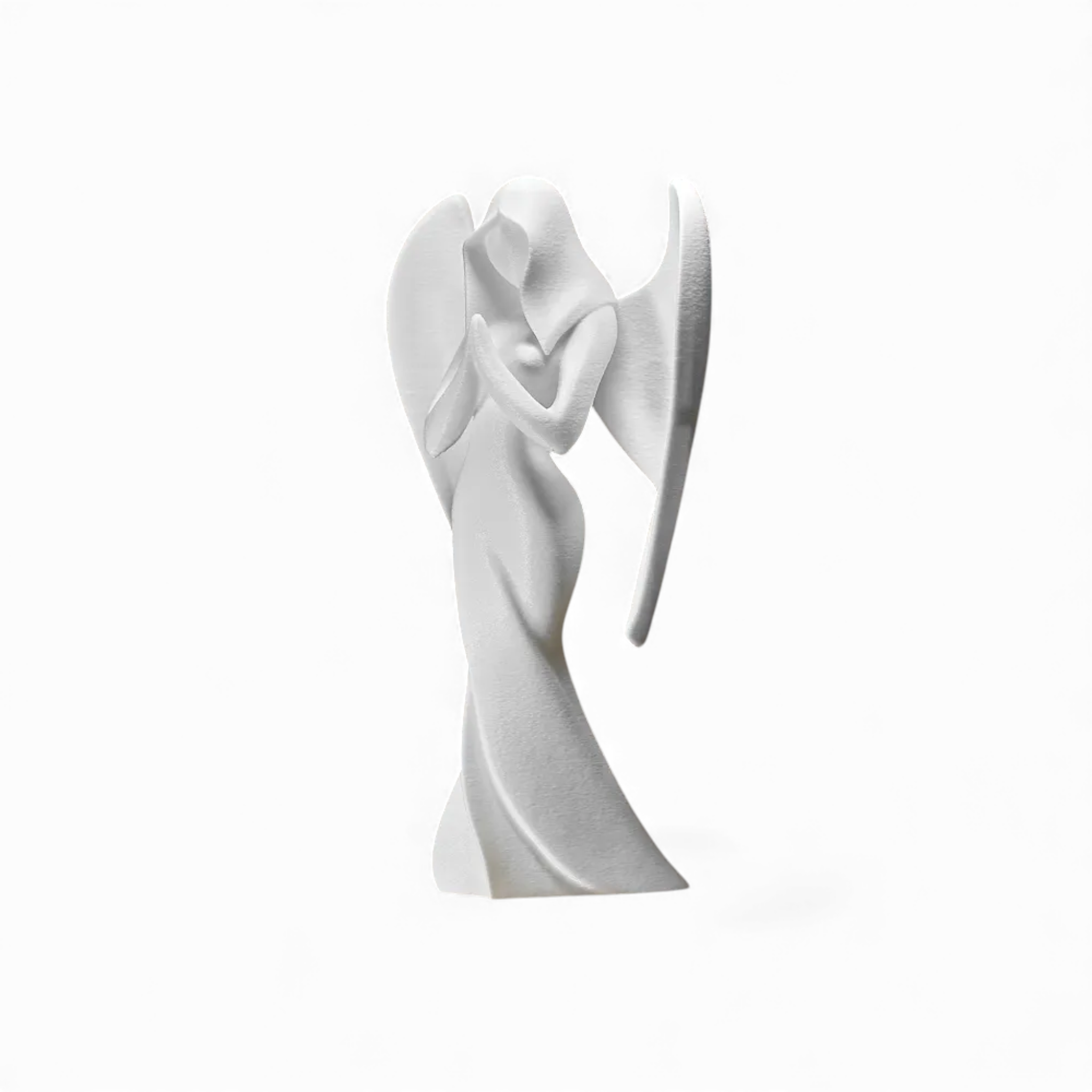 Breng tijdloze elegantie in je interieur met dit Engelen beeld. Deze moderne sculptuur, ontworpen met strakke geometrische lijnen en een minimalistische uitstraling, geeft elke ruimte een verfijnde en eigentijdse sfeer. Perfect om te plaatsen op een plank, bureau of schouw, waar het moeiteloos een stijlvol accent toevoegt.