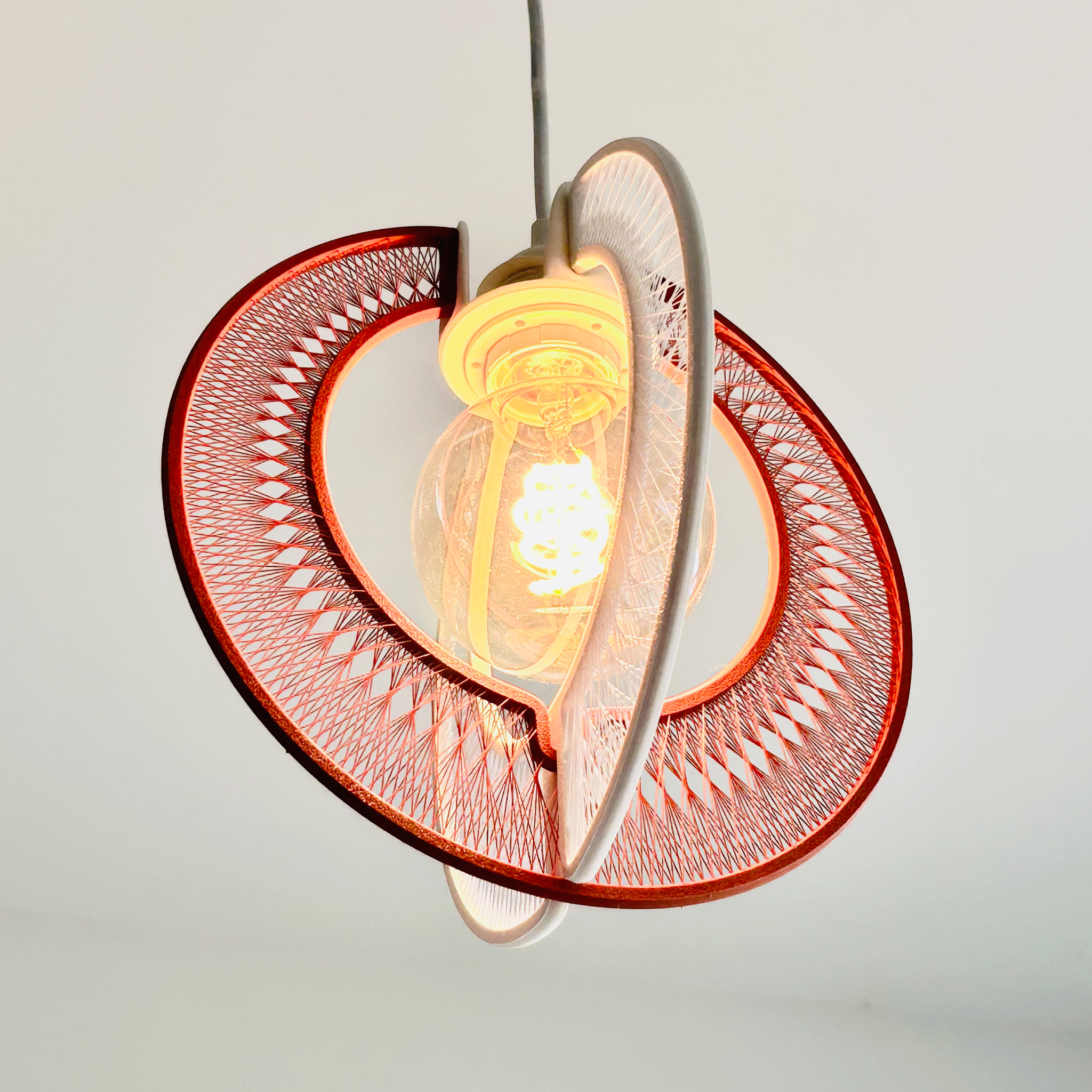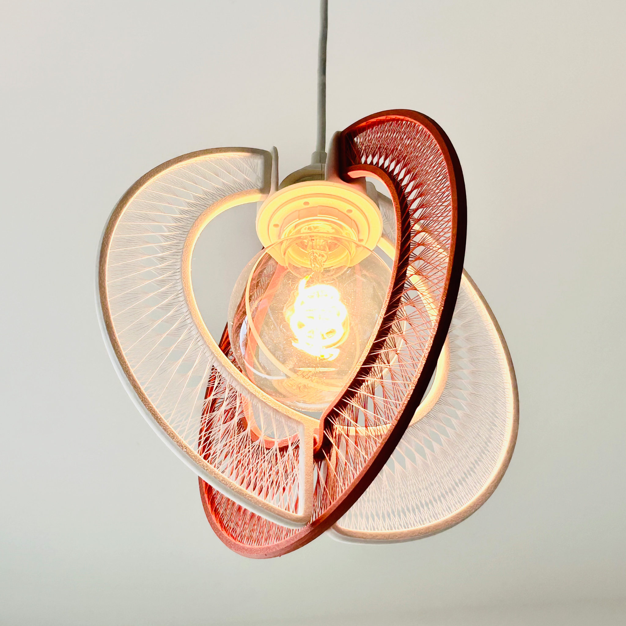 Het ontwerp bestaat uit twee elkaar kruisende frames die als moderne dromenvangers in de lucht lijken te zweven. Zodra het licht aangaat, ontstaat er een prachtig spel van schaduwen en diepte — perfect voor wie houdt van modern wonen met een artistiek accent.