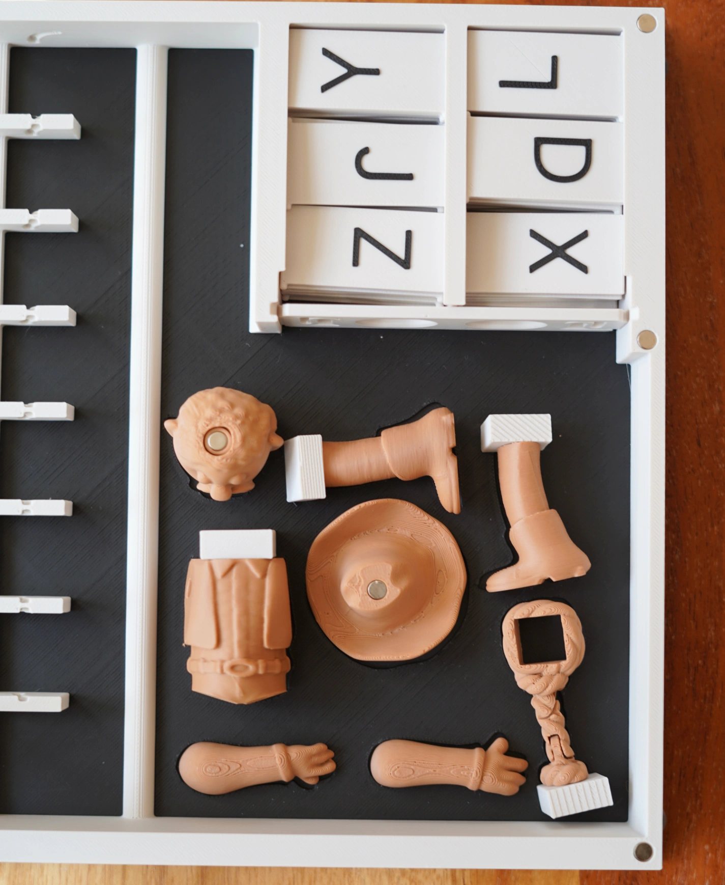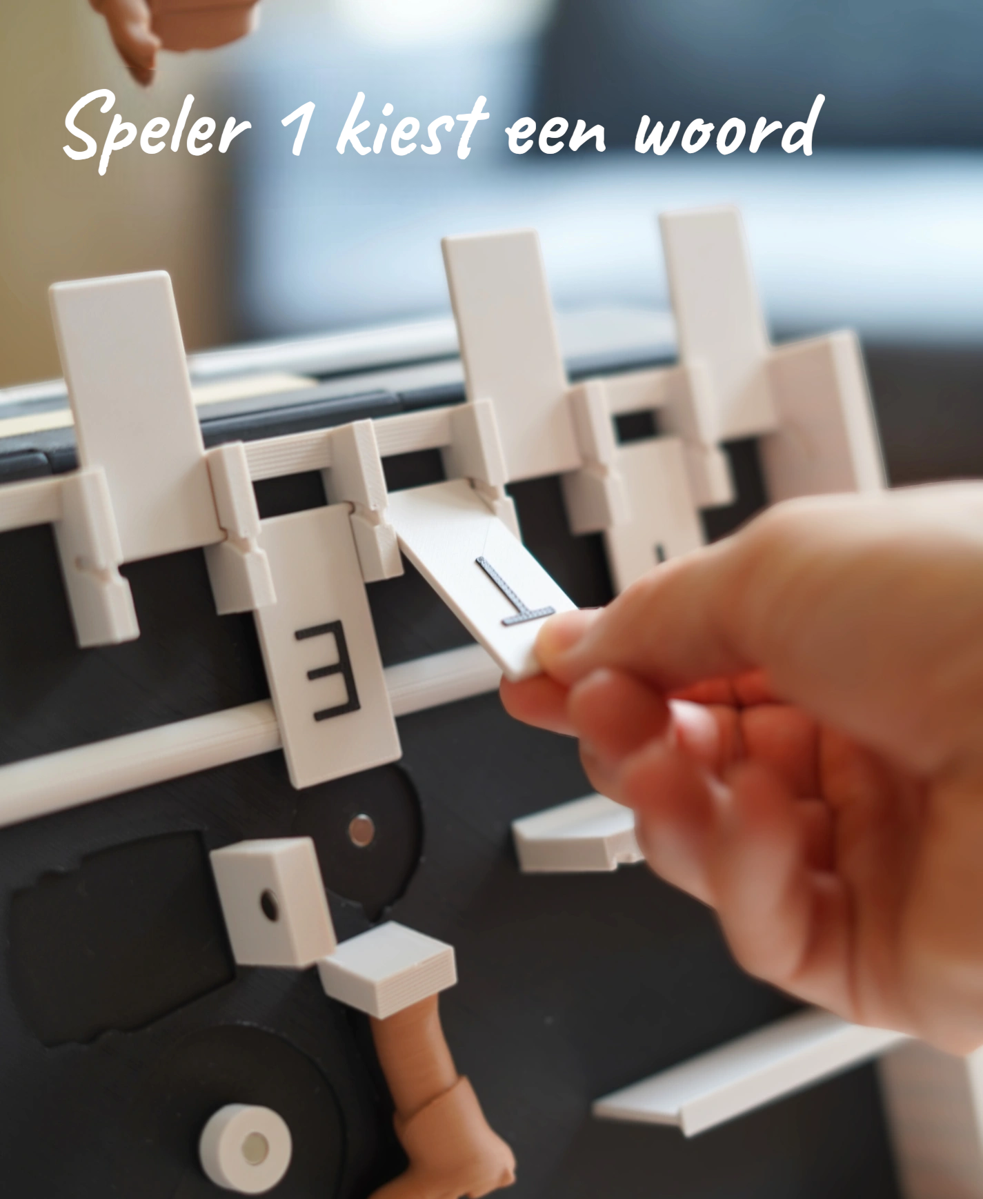 Een prachtig vormgegeven, interactieve versie van het klassieke galgje-spel, slim verborgen in een boekvormige opbergcase. Op tafel of in de boekenkast lijkt het een stijlvol hardcover boek — maar zodra je het opent, begint het spel meteen.
